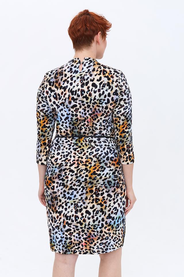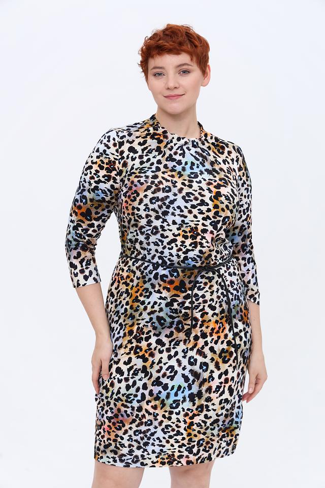 Особенность этого платья – яркий и эффектный леопардовый принт, выполненный в разнообразной цветовой гамме. Состав ткани: 92% вискоза, 8% эластан. Это платье станет прекрасным дополнением к вашему гардеробу и позволит создать множество интересных образов.