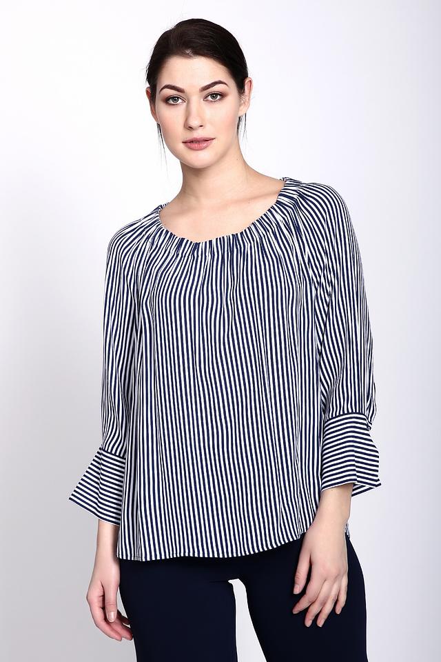 Блуза Erfo сине-белая в полоску с широкими манжетами