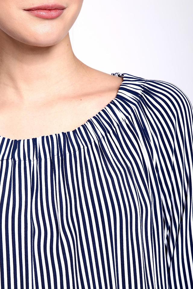 Эта женская блуза станет незаменимой частью вашего гардероба благодаря своей универсальности и изысканному дизайну. Свободный крой и присборенная горловина лодочкой гарантируют комфортную посадку, не сковывающую движений.