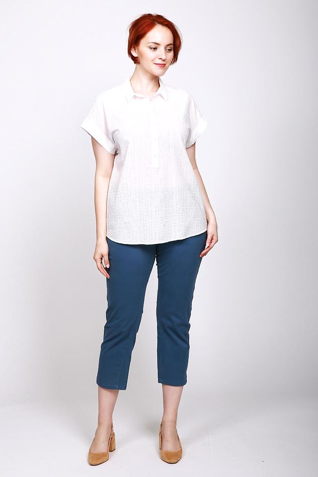 Блуза отличается классическим дизайном и универсальностью, легко сочетается как с повседневными, так и с более нарядными образами. Натуральный состав ткани гарантирует приятные тактильные ощущения и воздухопроницаемость, что особенно важно в теплое время года. Приятная текстура ткани добавляет изделию изысканности.