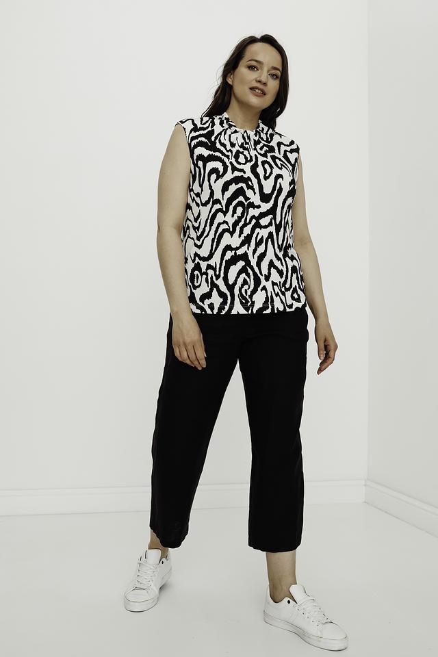 Топ без рукавов идеально подходит для создания летних образов. Он прекрасно сочетается с брюками, юбками и джинсами, позволяя создавать разнообразные стильные комплекты.