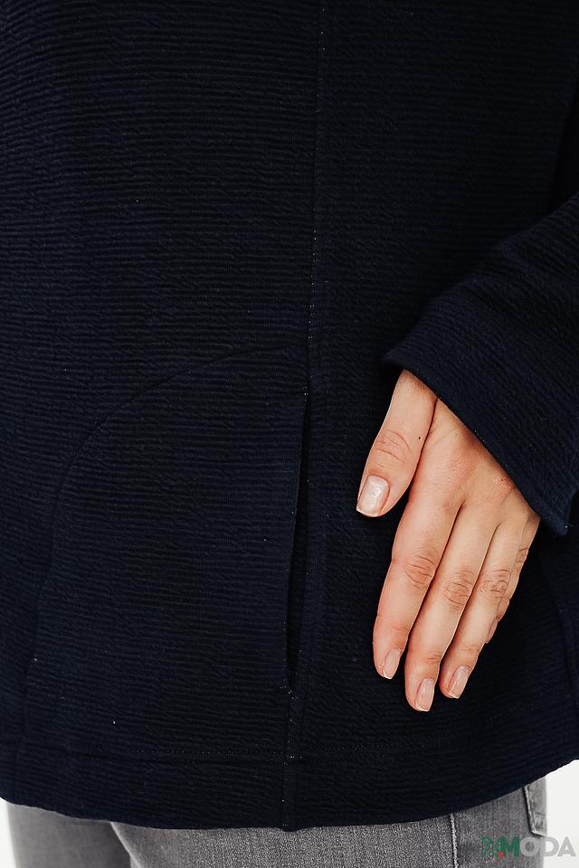 Тёмно-синий жакет от Erfo – стильная и удобная модель на молнии. Жакет выполнен из фактурного трикотажа с небольшим воротником и имеет накладной карман. Идеально дополнит повседневный гардероб. Состав: полиэстер 66%, вискоза 32%, эластан 2%