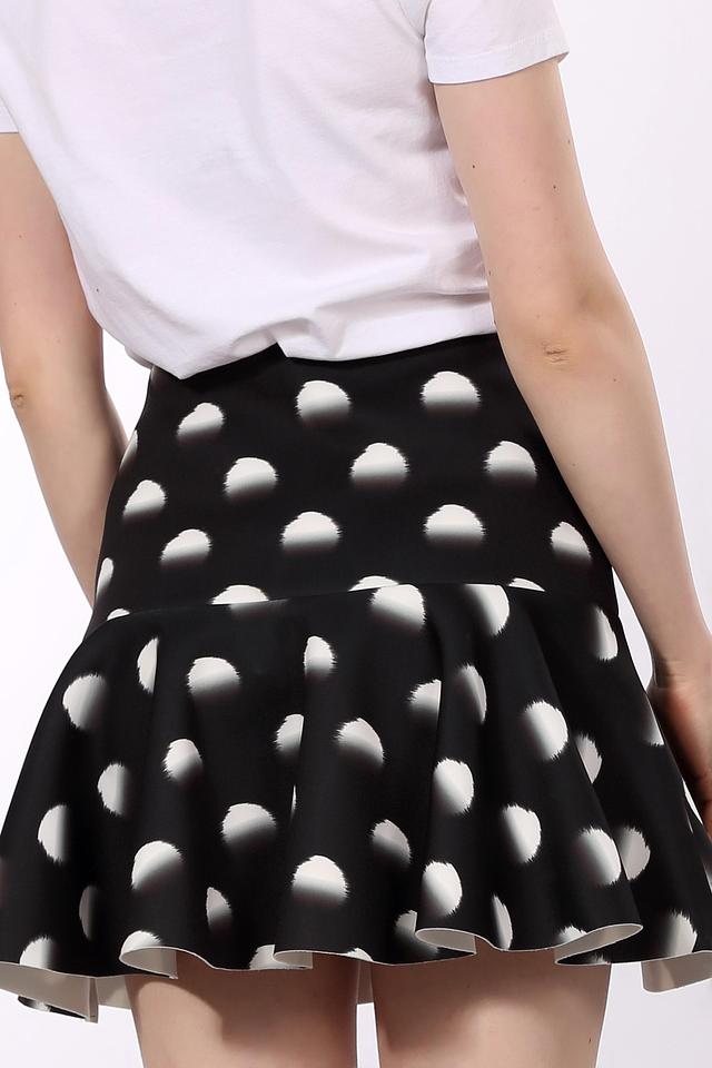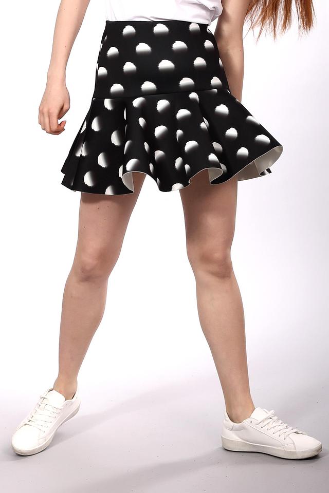 Эта юбка от Essentiel станет отличным дополнением к вашему гардеробу. Она выполнена в чёрном цвете и украшена контрастным белым принтом в горошек, что придает ей игривый и женственный вид.