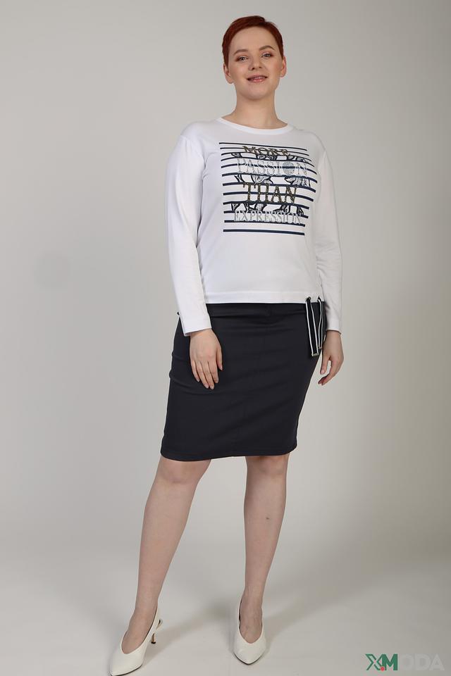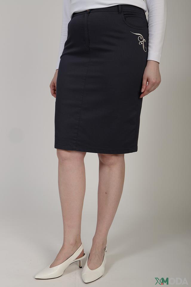 Основной цвет юбки – темно-синий, который легко сочетается с различными элементами гардероба. Оригинальным акцентом является вышивка золотистого цвета, расположенная сбоку. Эта деталь придает юбке изысканность и индивидуальность.