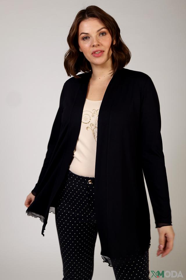 Жакет выполнен из высококачественной вискозы (93%) с добавлением эластана (7%), что обеспечивает мягкость, приятные тактильные ощущения и хорошую посадку по фигуре. Открытый крой без застежки делает его легким и удобным в носке.