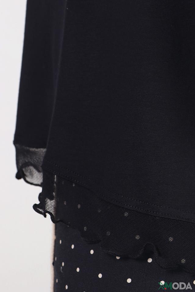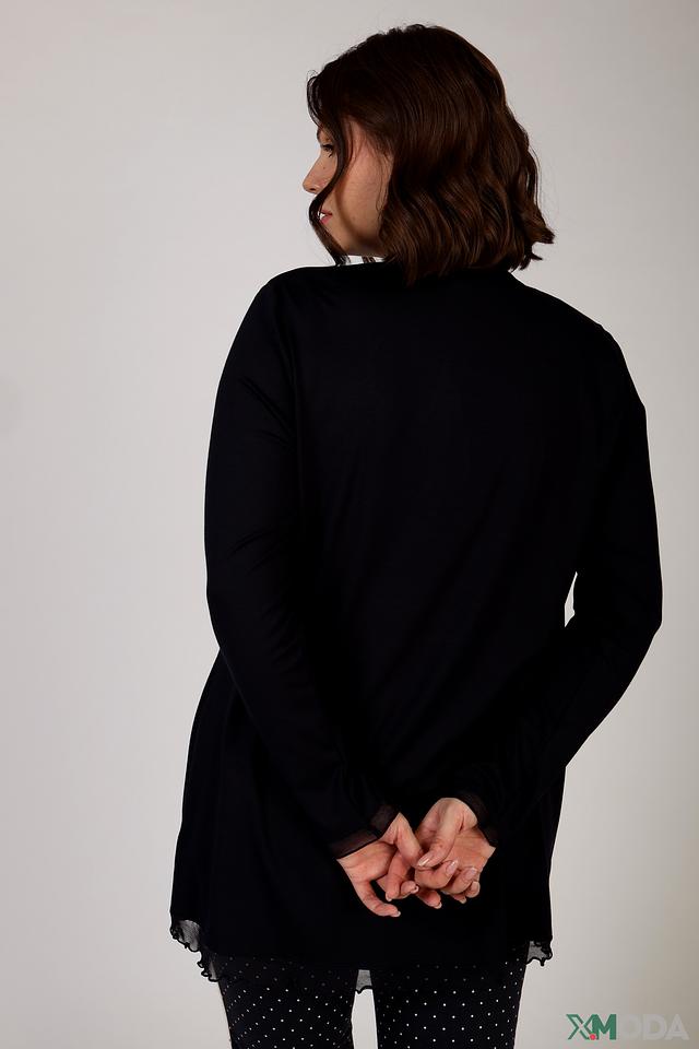 Особый акцент в дизайне жакета – декоративные оборки по низу, которые придают ему женственность и оригинальность. Длинные рукава и свободный силуэт делают его универсальным для разных типов фигур.