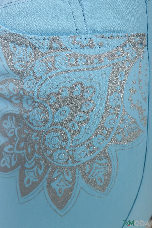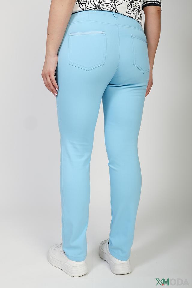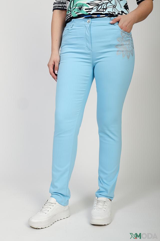 Женские брюки Eugen Klein голубого цвета с оригинальной вышивкой на кармане. Модель выполнена из мягкой ткани с добавлением эластана для комфортной посадки и свободы движений. Состав: хлопок 63%, полиамид 32%, эластан 5%