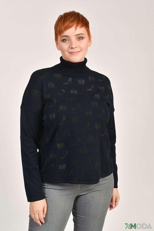 Водолазка Eugen Klein тёмно-синего цвета с оригинальным принтом в виде сумок и туфель станет стильным дополнением к вашему гардеробу. Изготовлена из мягкого и приятного к телу модала с добавлением акрила и полиамида. Состав: модал 46%, полиакрил 40%, полиамид 14%