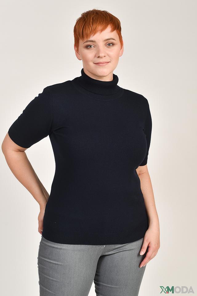 Пуловер имеет удобный крой, который подчеркивает фигуру, не сковывая движений. Воротник-стойка добавляет изысканности и защищает от прохлады. Короткие рукава делают этот пуловер идеальным выбором для тёплой погоды или для создания многослойных образов.