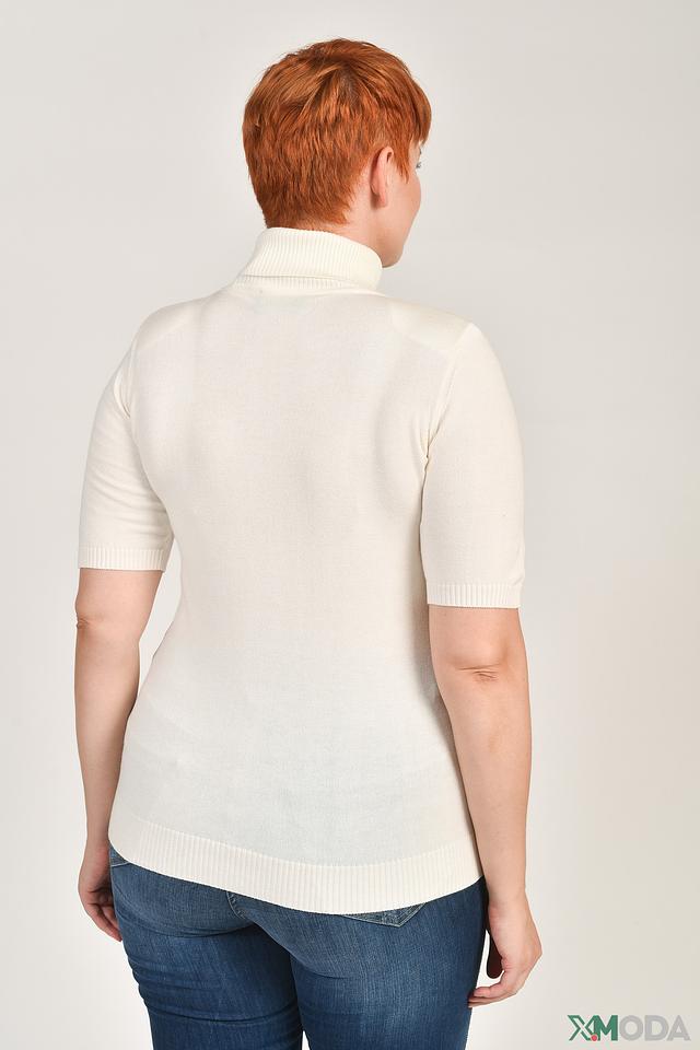 Водолазка имеет классический крой с короткими рукавами и облегающим силуэтом, который подчеркивает фигуру. Высокий воротник-стойка добавляет элегантности и защищает от холода. Текстура ткани имеет мелкую вязку, что придает изделию аккуратный и стильный вид.