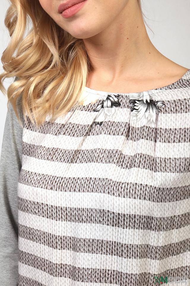 Блуза Eugen Klein серого цвета с полосатым принтом и цветочным декором. Модель выполнена из мягкой вискозы с добавлением эластана, что обеспечивает комфорт в носке и хорошую посадку по фигуре. Состав: вискоза 93%, эластан 7%