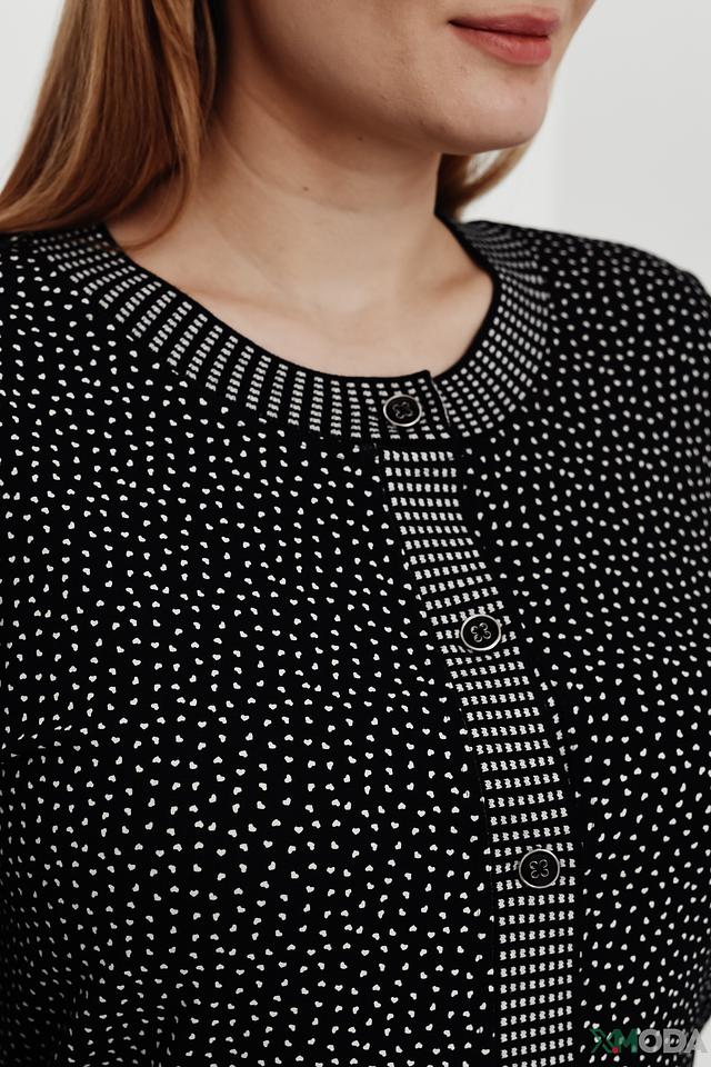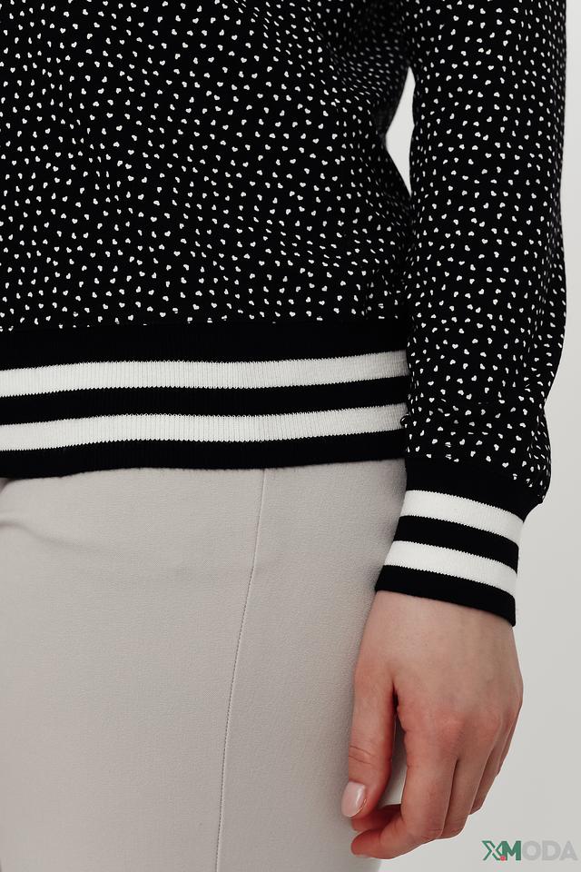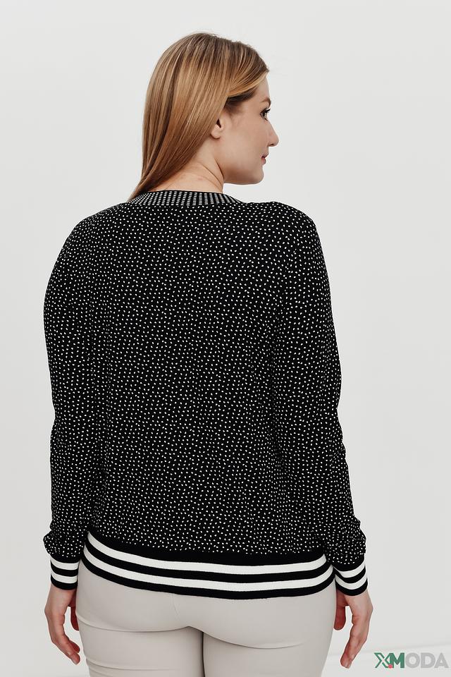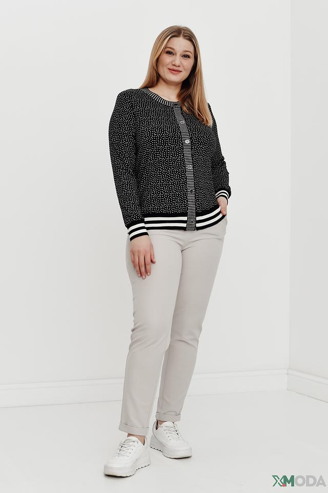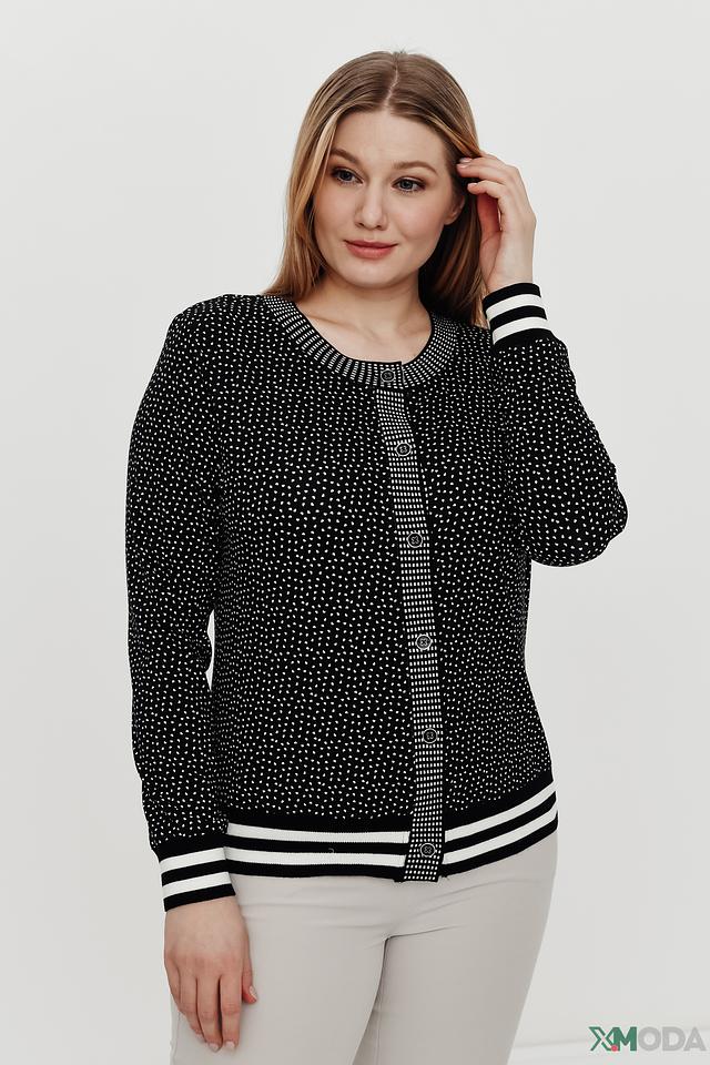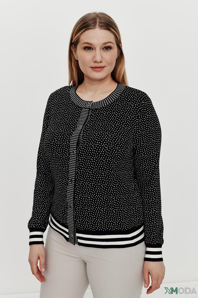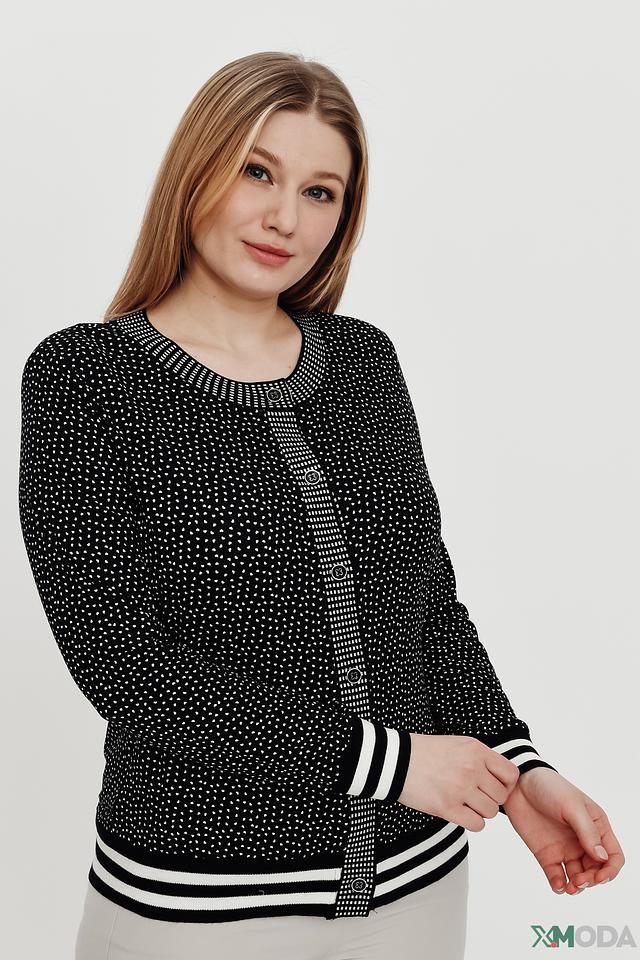 Чёрный жакет Eugen Klein с белым горошком – стильная и удобная модель на пуговицах с отделкой в виде полос на рукавах и подоле. Жакет выполнен из мягкой вискозы с добавлением эластана, обеспечивающего комфортную посадку. Состав: вискоза 93%, эластан 7%