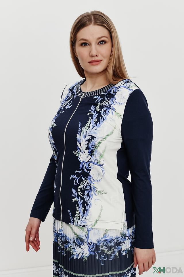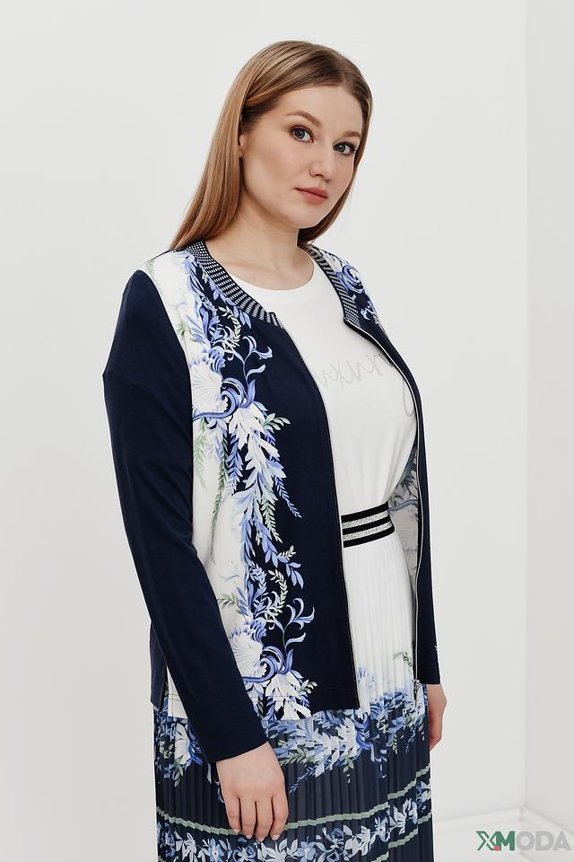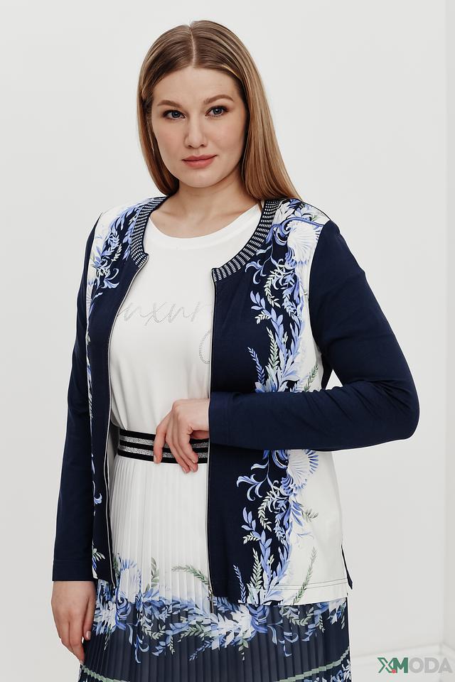 Жакет Eugen Klein темно-синего цвета с ярким цветочным принтом станет стильным дополнением к вашему гардеробу. Модель выполнена из мягкой вискозы с добавлением эластана, обеспечивающего комфортную посадку. Жакет идеально сочетается с платьями и юбками. Состав: вискоза 93%, эластан 7%