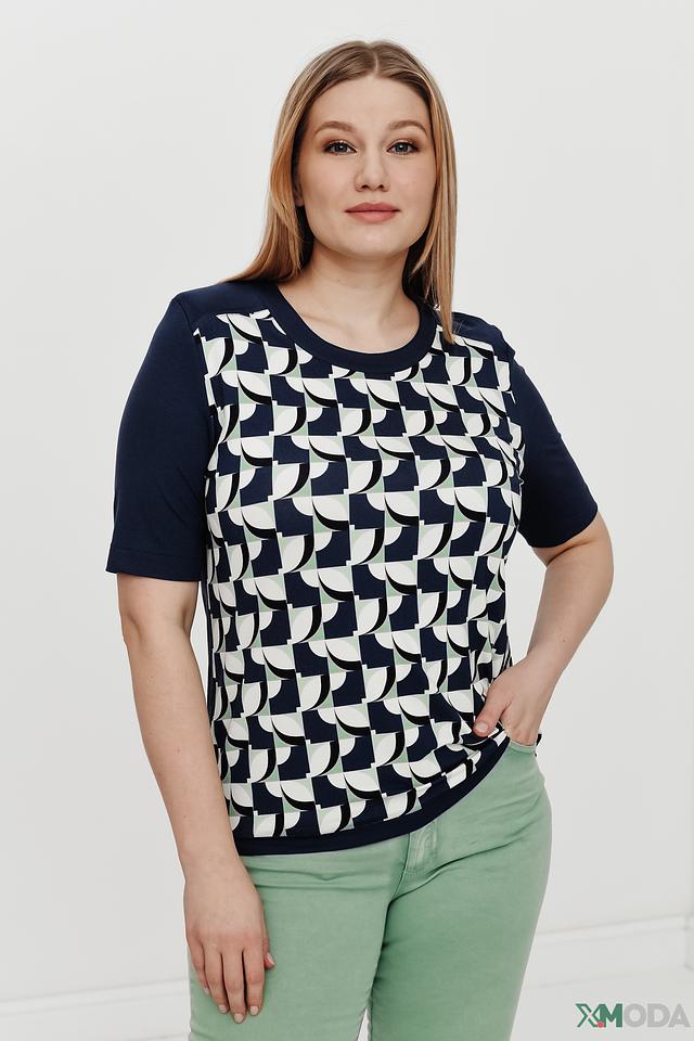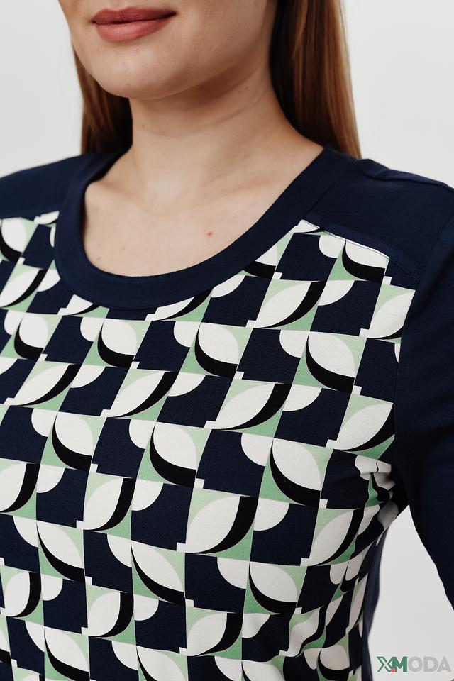 Женская блуза Eugen Klein синего цвета с оригинальным геометрическим принтом станет стильным дополнением к вашему гардеробу. Модель выполнена из мягкой вискозы с добавлением эластана, что обеспечивает комфорт в носке и отличную посадку по фигуре. Состав: вискоза 93%, эластан 7%
