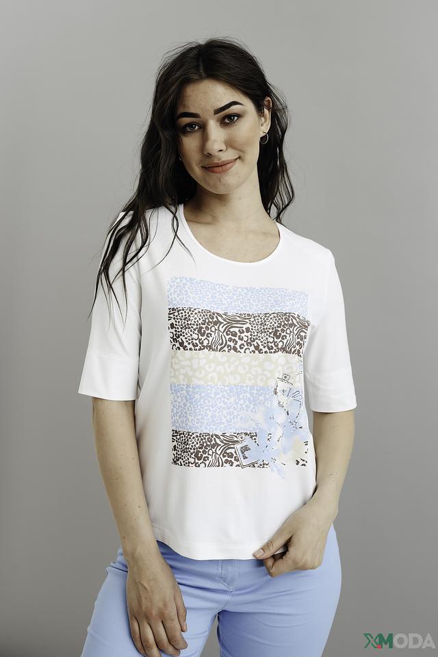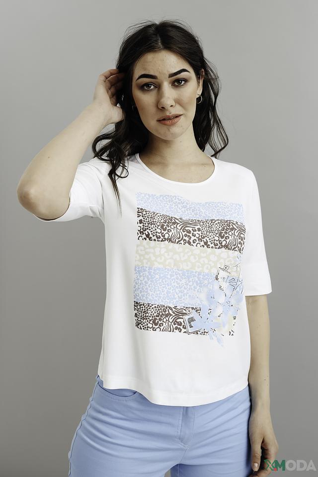 Белая футболка Eugen Klein с оригинальным принтом в стиле "animal". Модель из мягкой вискозы с добавлением эластана обеспечит комфорт и свободу движений. Идеально сочетается с джинсами и брюками. Состав: вискоза 93%, эластан 7%