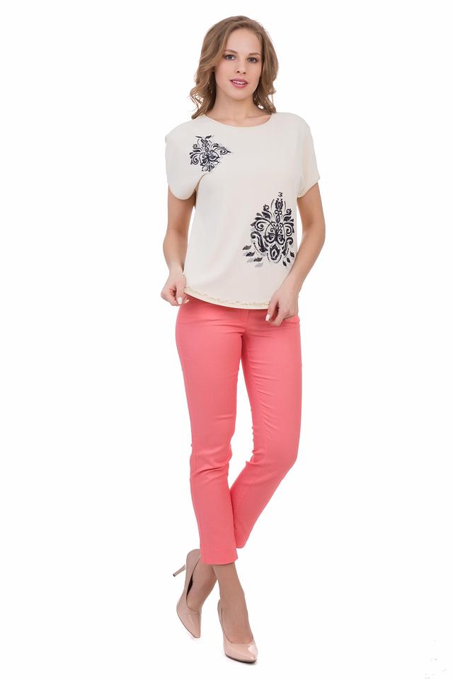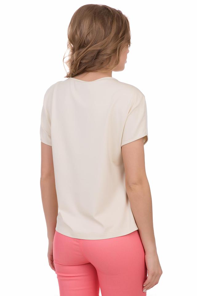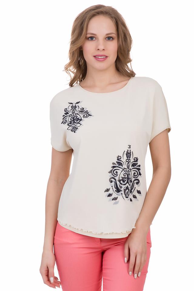 Блуза имеет свободный крой, короткие рукава и округлый вырез горловины. Она изготовлена из высококачественной вискозы с добавлением эластана (93% вискоза, 7% эластан), что обеспечивает комфорт и удобство в носке, а также хорошую драпировку.