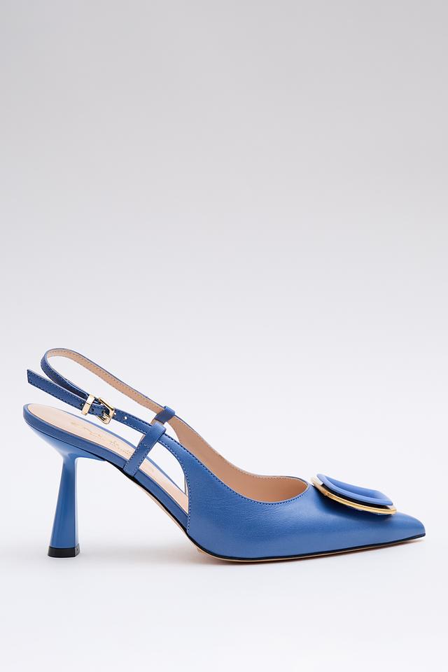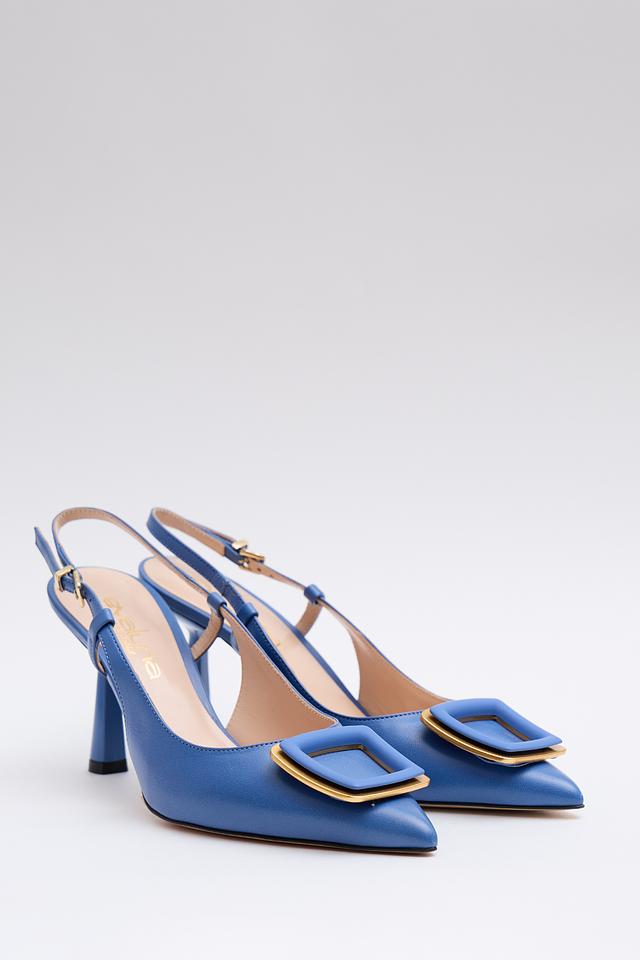 Синие туфли-лодочки от Evaluna с элегантной золотистой пряжкой. Модель выполнена из натуральной кожи и имеет удобный каблук-рюмочку, что делает их идеальным выбором для создания стильного образа. Состав: кожа 100%, Состав_низ кожа 100%, Состав_подкладка кожа 100%