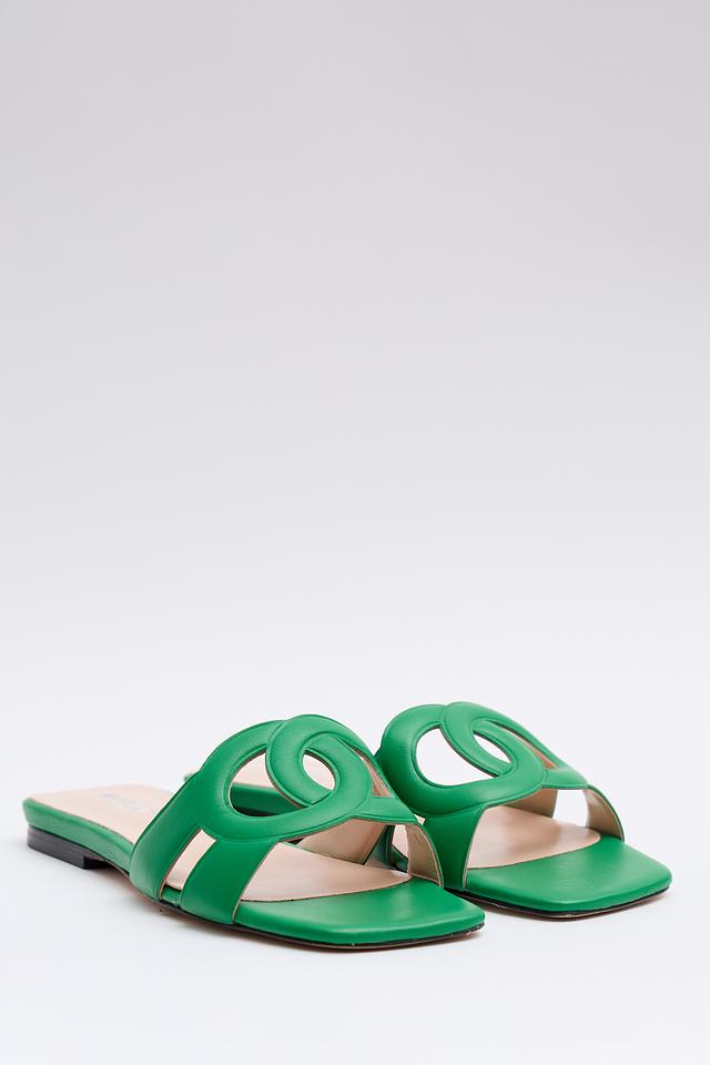 Женские шлепанцы Evaluna зеленого цвета с оригинальным дизайном. Модель выполнена из натуральной кожи, отличается удобной плоской подошвой и стильным декором в виде переплетенных элементов. Состав: кожа 100%, Состав_низ кожа 100%, Состав_подкладка кожа 100%