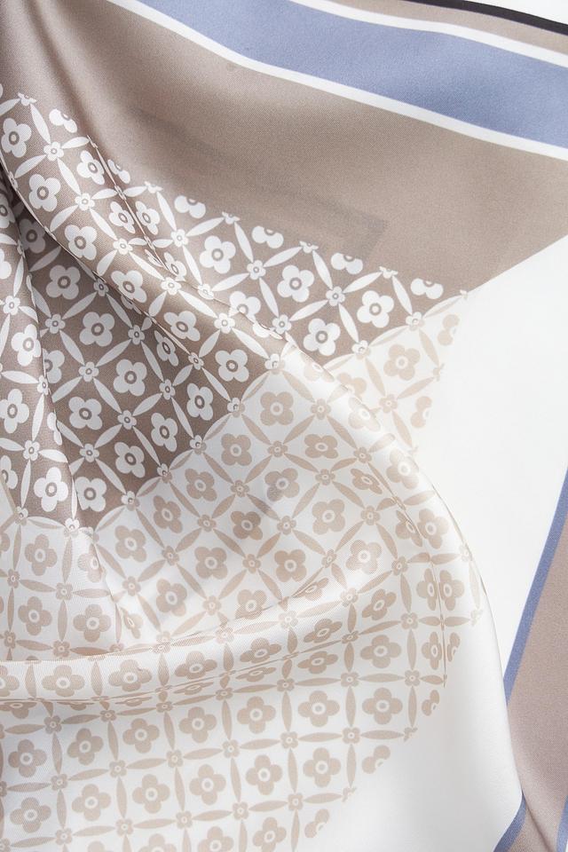 Этот шарф от Fabretti выполнен в нежной бежевой гамме и украшен изысканным цветочным принтом. Квадратная форма и гладкая текстура ткани делают его универсальным аксессуаром, который можно носить разными способами.