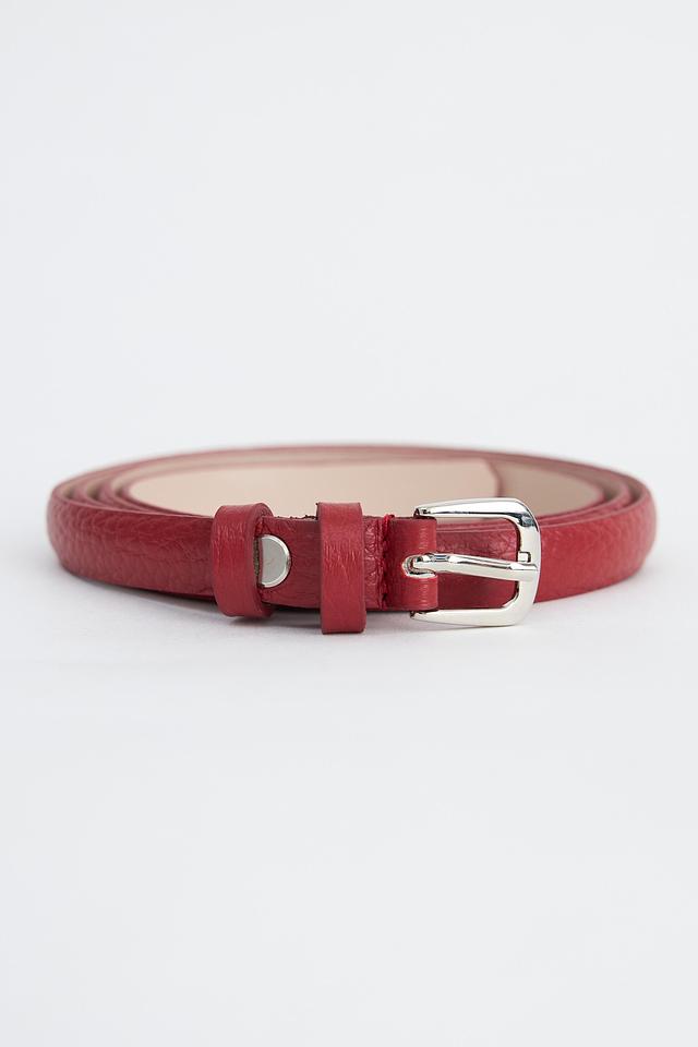 Этот женский ремень от Fabretti выполнен из качественной кожи насыщенного красного цвета. Ремень имеет классический дизайн с лаконичной серебристой пряжкой.
