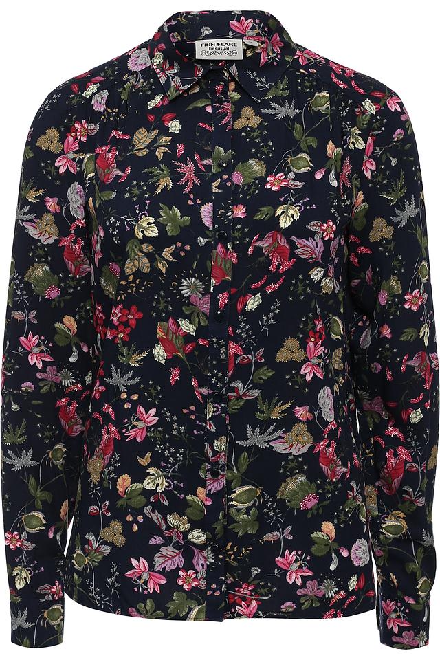 Женская блуза FINN FLARE тёмно-синего цвета с ярким цветочным принтом. Изготовлена из мягкой и приятной к телу вискозы, обеспечивающей комфорт в носке. Отличный выбор для создания стильного и женственного образа. Состав: вискоза 100%