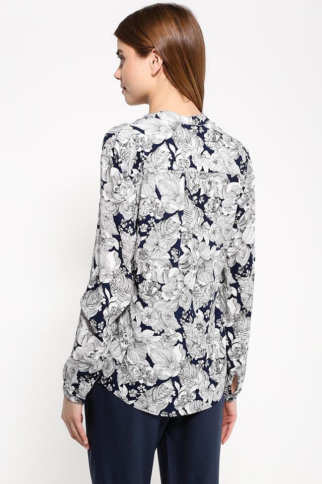 Особенностью данной модели является яркий цветочный принт, который придает блузе неповторимый шарм и индивидуальность. V-образный вырез горловины и длинные рукава делают ее универсальной для различных случаев. Блуза имеет слегка заниженную линию плеч и свободный крой, что обеспечивает комфортную посадку по фигуре.