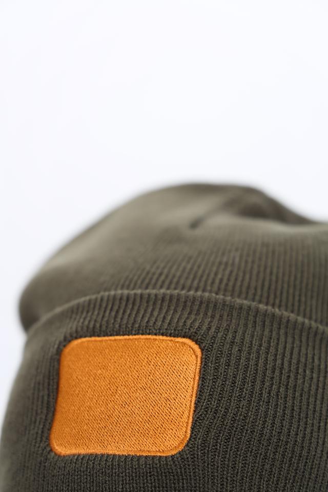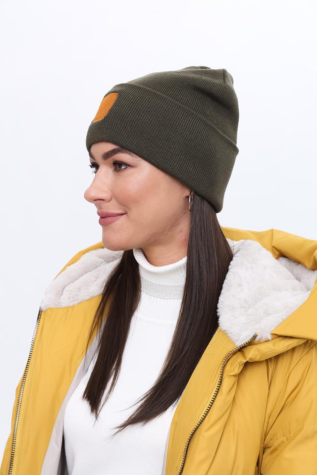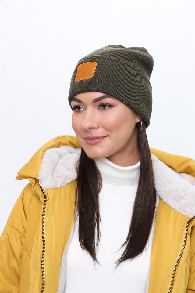 Шапка изготовлена из 100% полиакрила, что обеспечивает ей мягкость, тепло и долговечность. На лицевой части шапки расположена декоративная нашивка коричневого цвета, добавляющая ей оригинальности.
