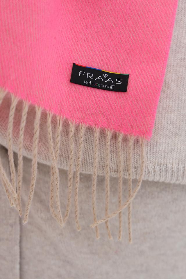 Яркий шарф Fraas сочетает в себе насыщенные оттенки розового, оранжевого, зелёного и лавандового. Аксессуар выполнен из мягкого полиэстера и дополнен стильной бахромой по краям. Состав: полиэстер 100%