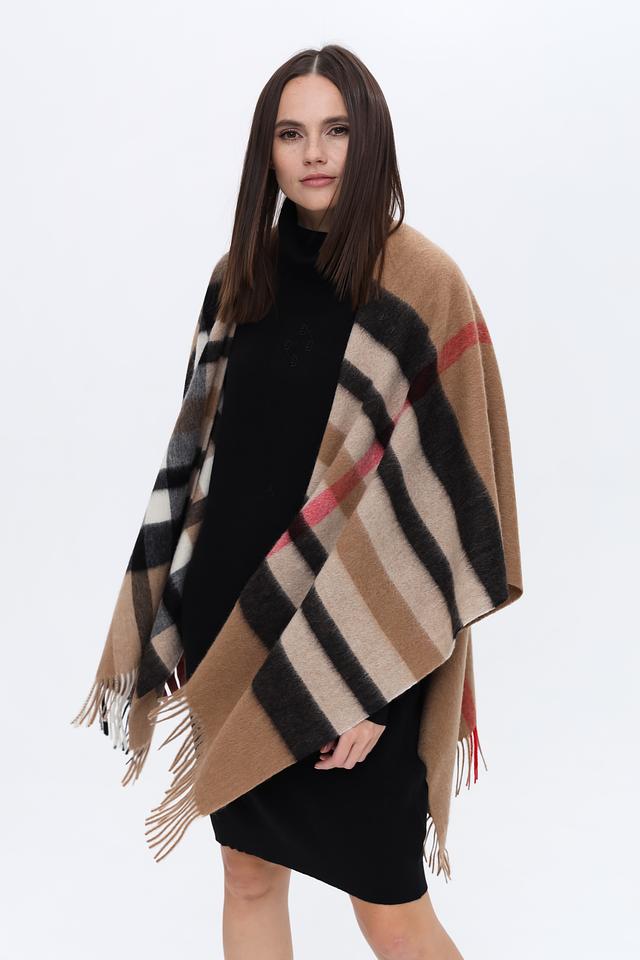 Это элегантное пончо от Fraas выполнено в бежевой цветовой гамме и украшено традиционной клеткой, сочетающей в себе оттенки бежевого, коричневого, белого и красного. Пончо имеет свободный крой, который обеспечивает комфорт и свободу движений.