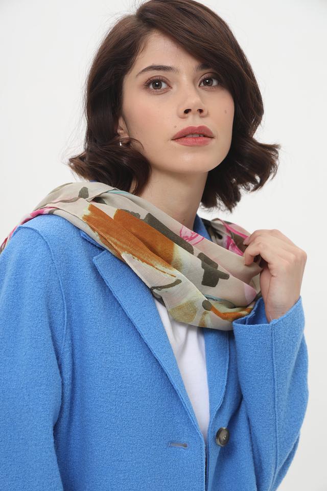 Этот шарф от Fraas – идеальный аксессуар для создания яркого и запоминающегося образа. Шарф выполнен в светло-серой цветовой гамме и украшен абстрактным цветочным принтом, сочетающим в себе оттенки розового, оранжевого, зеленого и голубого.