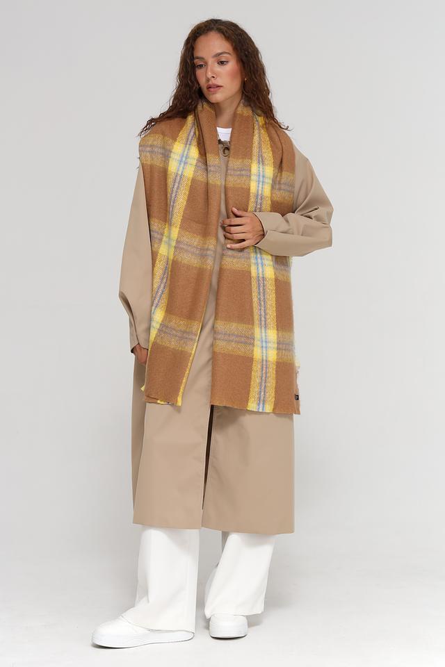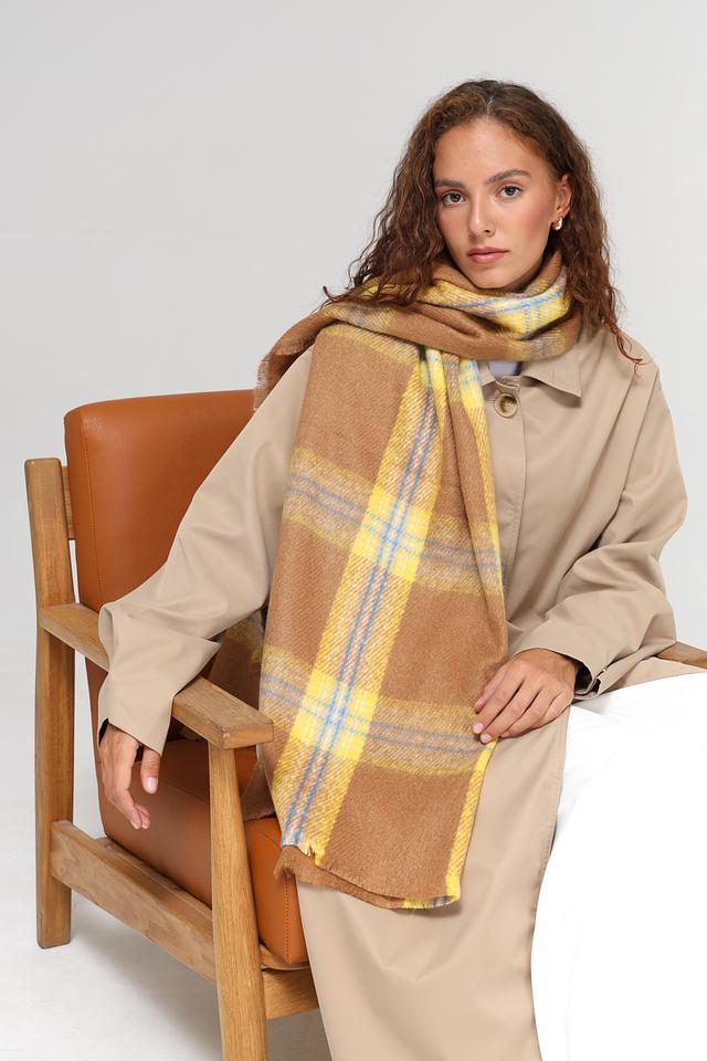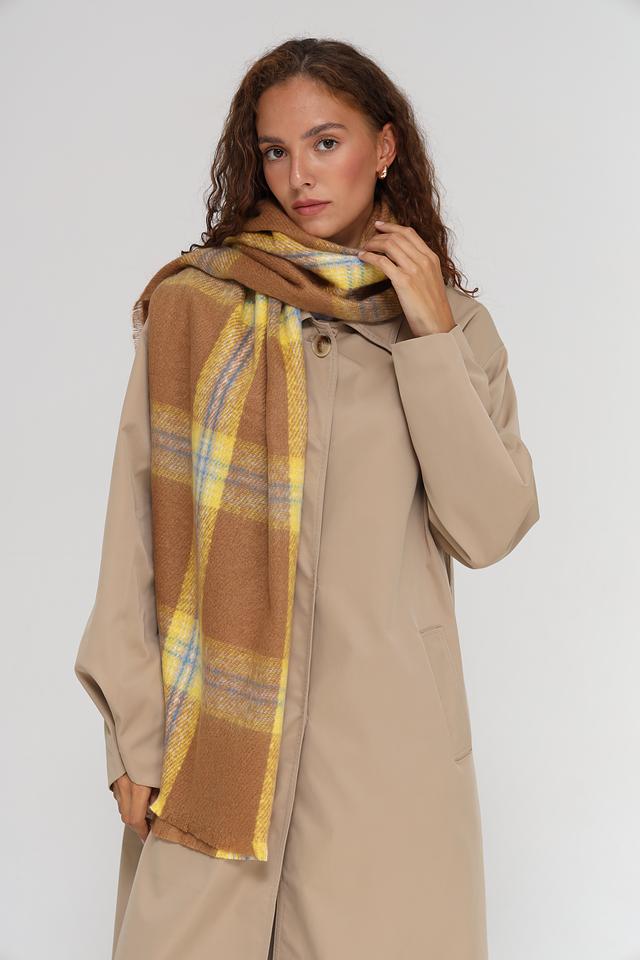 Этот шарф от Fraas – идеальный аксессуар для создания уютного и стильного образа. Шарф выполнен в коричневой цветовой гамме и украшен классическим клетчатым принтом, сочетающим в себе оттенки коричневого, жёлтого и голубого.