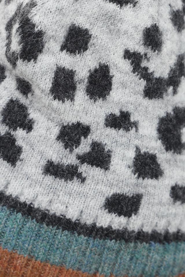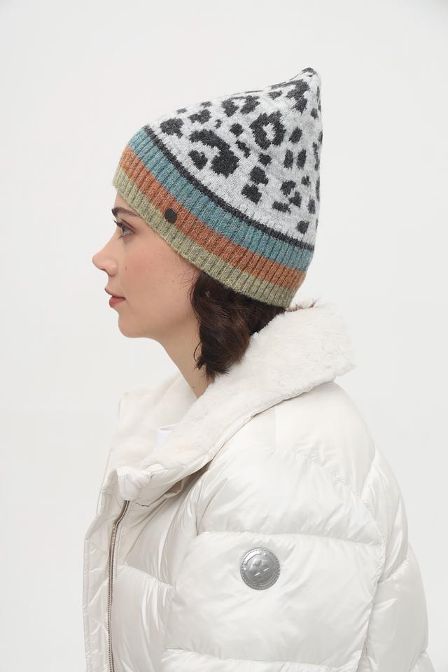 Эта шапка от Fraas – идеальный выбор для тех, кто ценит комфорт и стиль. Шапка выполнена в серой цветовой гамме с эффектным леопардовым принтом на верхней части и яркой полосатой вставкой в нижней части.