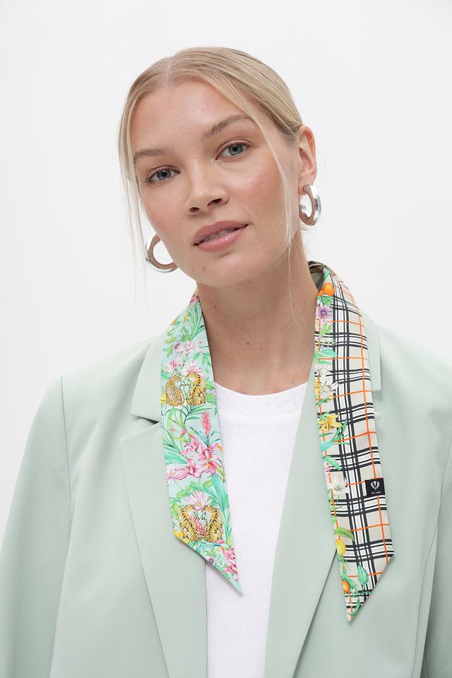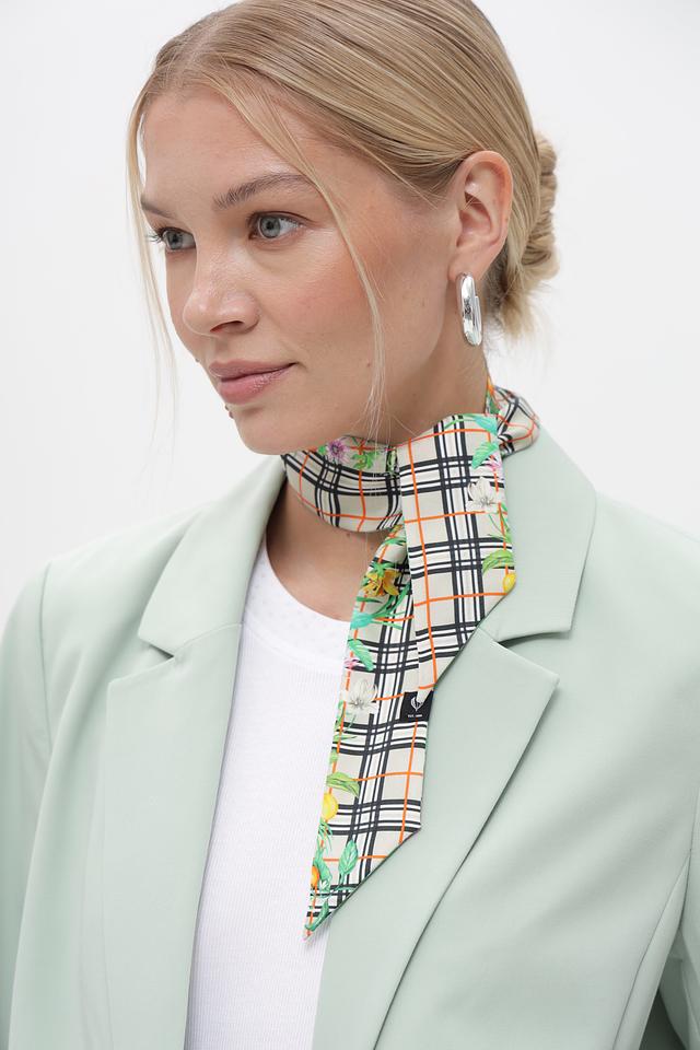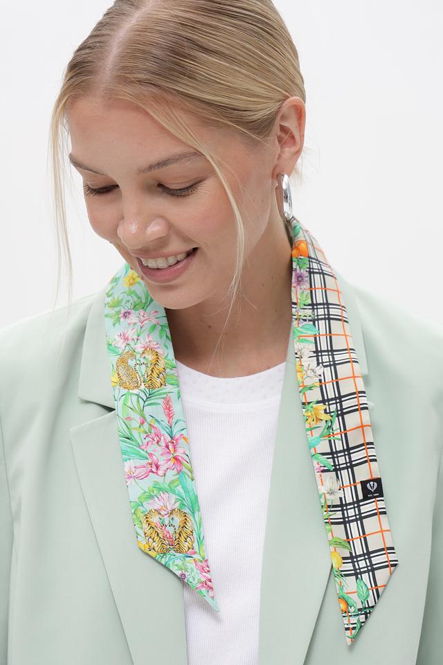 Дизайн шарфа сочетает в себе два узора: классическую клетку и яркий цветочный принт. Такое сочетание делает его универсальным аксессуаром, который можно носить с различными стилями одежды – от делового костюма до повседневного наряда.