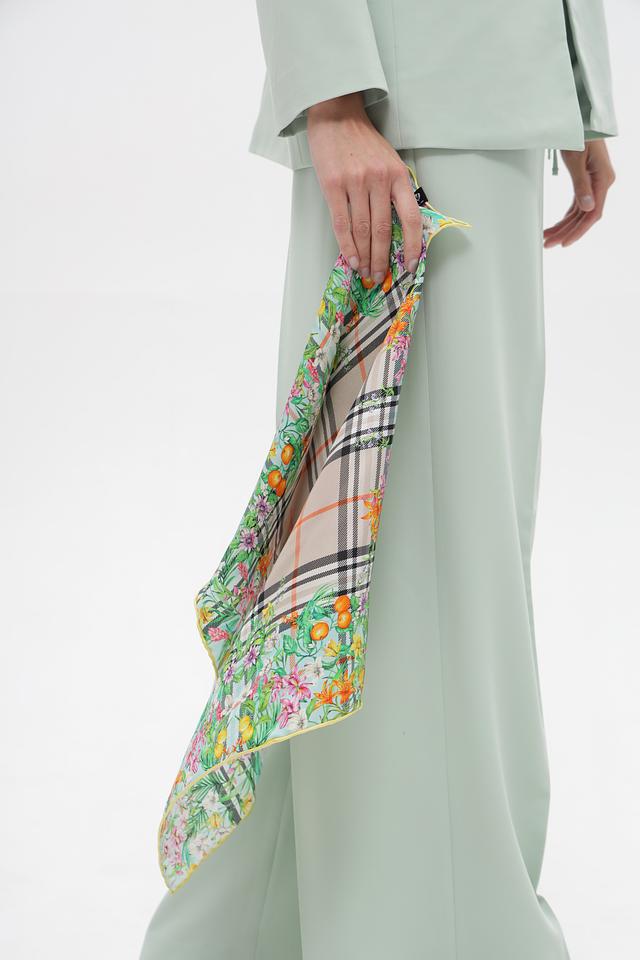 Благодаря высококачественному шёлку, платок обладает деликатным блеском и приятной прохладой, что особенно актуально в тёплую погоду. Он станет прекрасным дополнением к вашему гардеробу и подчеркнёт вашу индивидуальность.