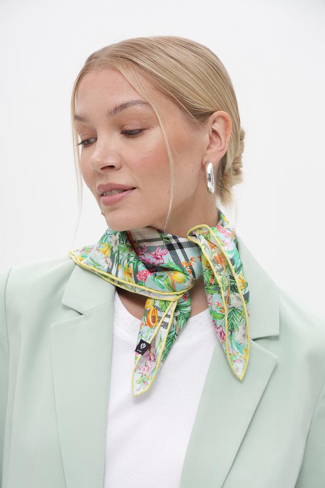 Платок имеет квадратную форму, что позволяет носить его разными способами: как шейный платок, повязку на голову или даже как элемент декора сумки.