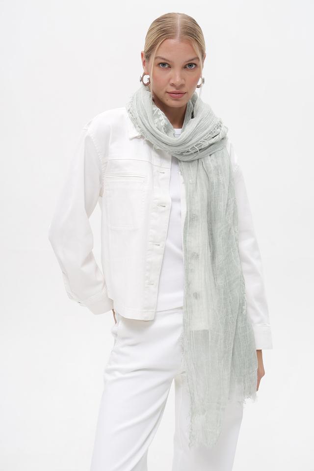 Шарф изготовлен из сочетания полиакрила, вискозы и полиэстера, что обеспечивает мягкость, легкость и долговечность. Текстура шарфа легкая и воздушная, идеально подходит для демисезонного периода.