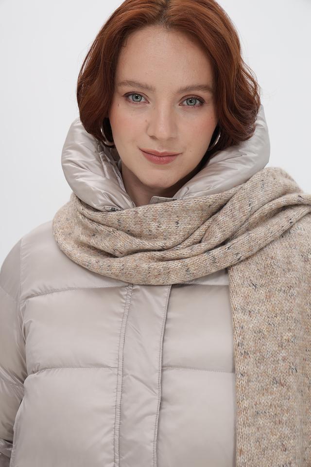 Этот шарф от Fraas – идеальный аксессуар для создания уютного и элегантного образа. Шарф выполнен в бежевых тонах с добавлением разноцветных нитей и мерцающих элементов, что придает ему особый шарм.