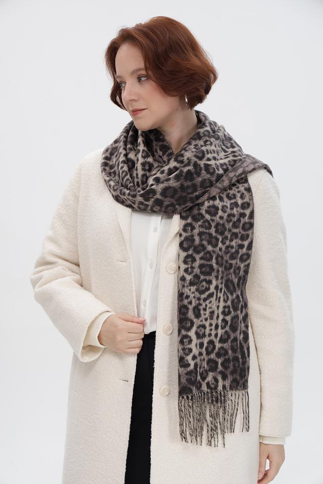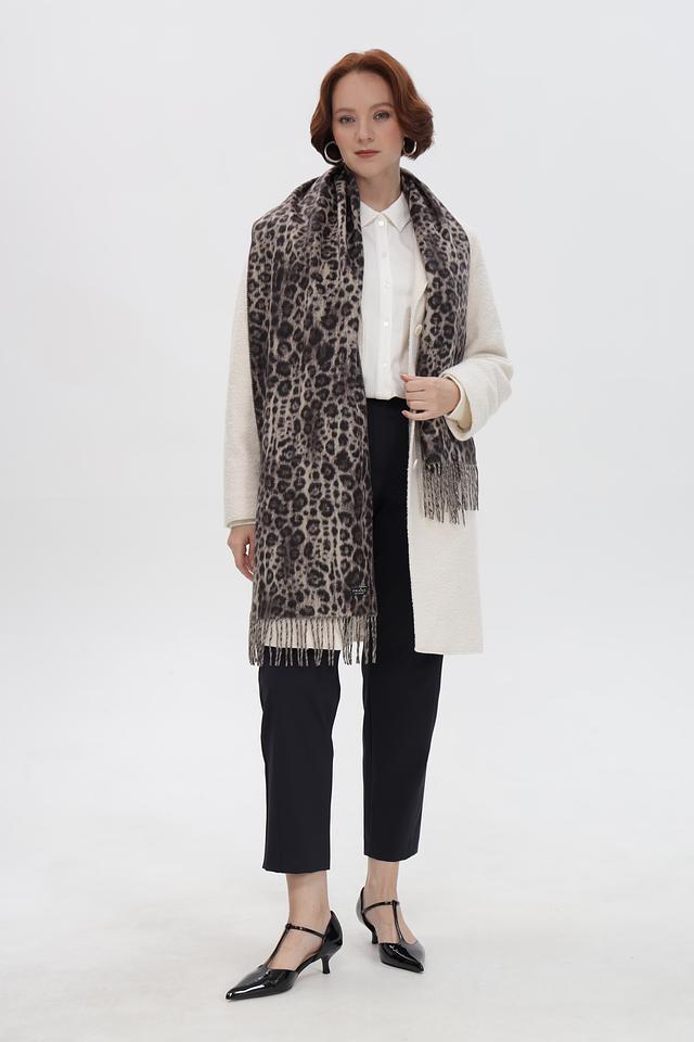 Шарф Fraas серого цвета с леопардовым принтом – стильный и универсальный аксессуар. Изготовлен из мягкого полиакрила, приятного на ощупь, и дополнен бахромой по краям. Состав: полиакрил 100%