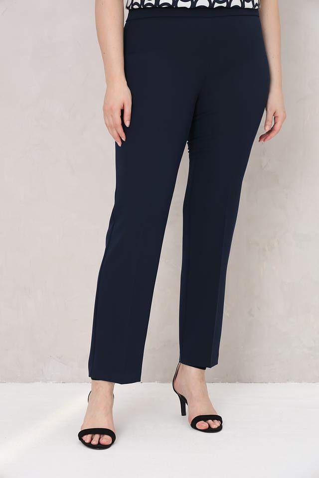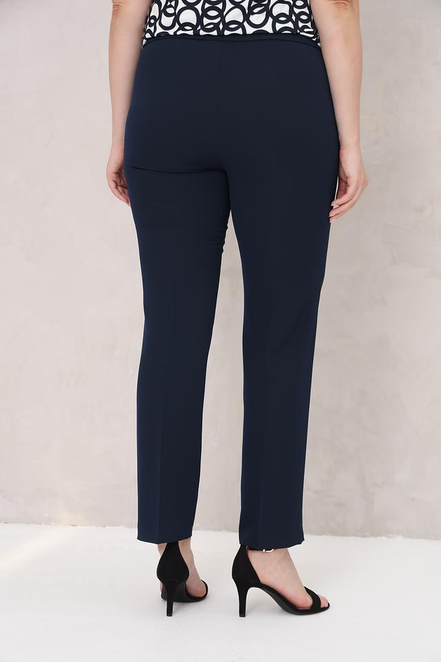Брюки имеют прямой крой и стандартную посадку по фигуре, обеспечивая комфорт в носке. Темно-синий цвет делает их универсальными и подходящими для сочетания с различными элементами одежды.