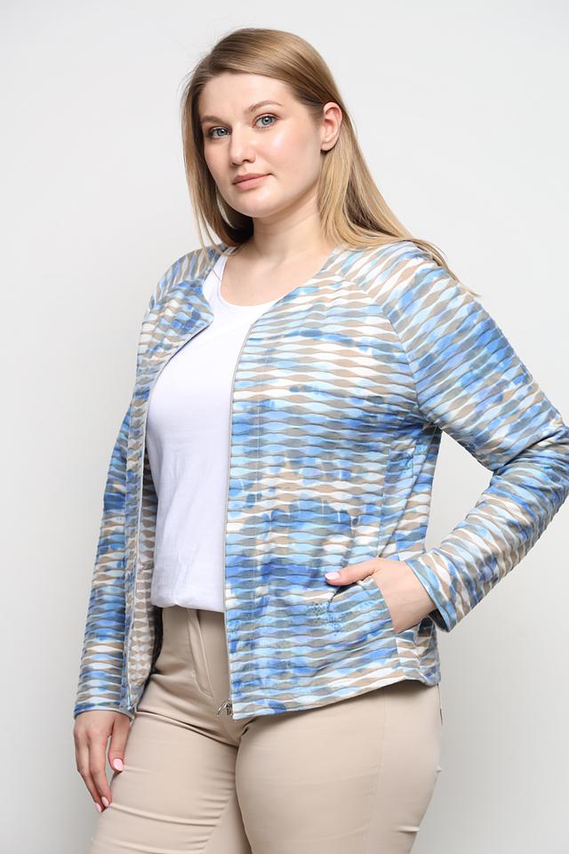 Жакет Frank Walder голубого цвета с оригинальным принтом – стильное и комфортное решение для создания модных образов. Модель застегивается на молнию и имеет удобные карманы. Жакет выполнен из приятной на ощупь ткани с добавлением вискозы, полиэстера и эластана. Состав: вискоза 50%, полиэстер 45%, эластан 5%