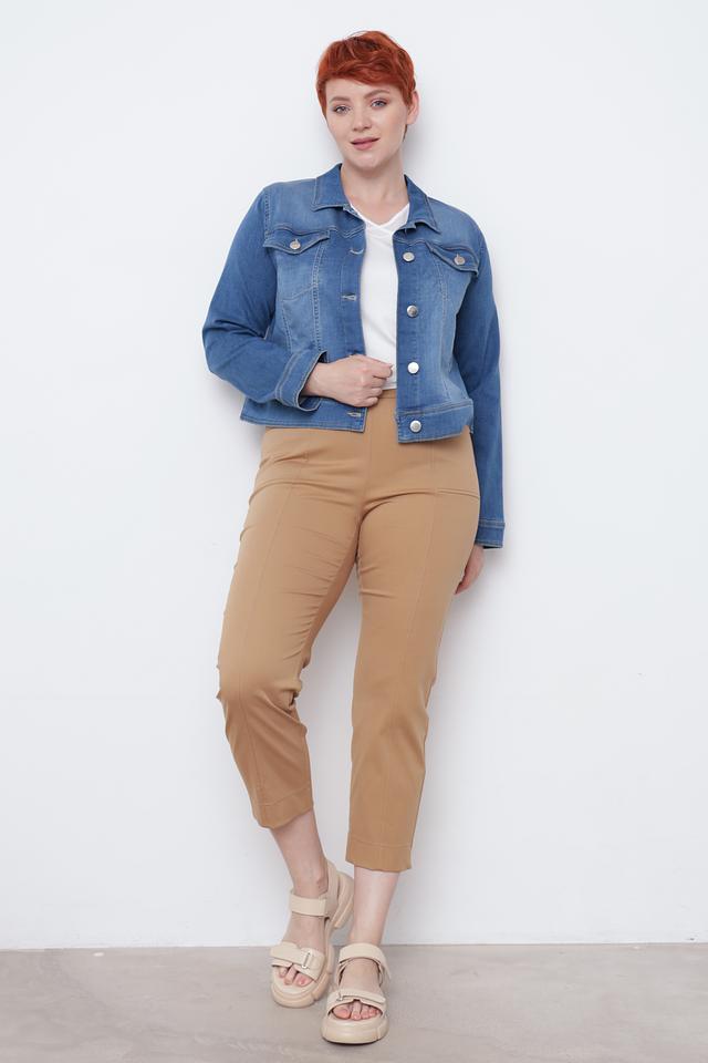 Жакет выполнен из высококачественного хлопка с добавлением эластана (2%), что обеспечивает комфорт и свободу движений. Застежка на пуговицах позволяет легко регулировать посадку. Отделка карманов и манжеты выполнены в тон основной ткани.