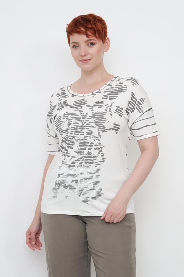 Женская футболка Frank Walder белого цвета с оригинальным графичным принтом. Модель выполнена из мягкой вискозы с добавлением эластана, обеспечивающего комфортную посадку по фигуре. Состав: вискоза 96%, эластан 4%