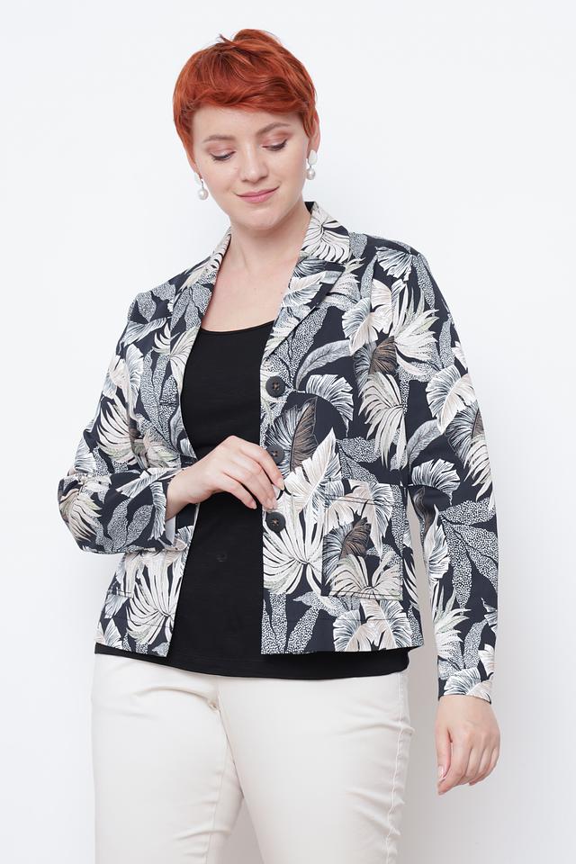 Жакет Frank Walder темно-синего цвета с ярким цветочным принтом станет стильным дополнением к вашему гардеробу. Классический крой и удобная посадка делают его идеальным выбором для создания элегантных образов. Состав: хлопок 97%, эластан 3%