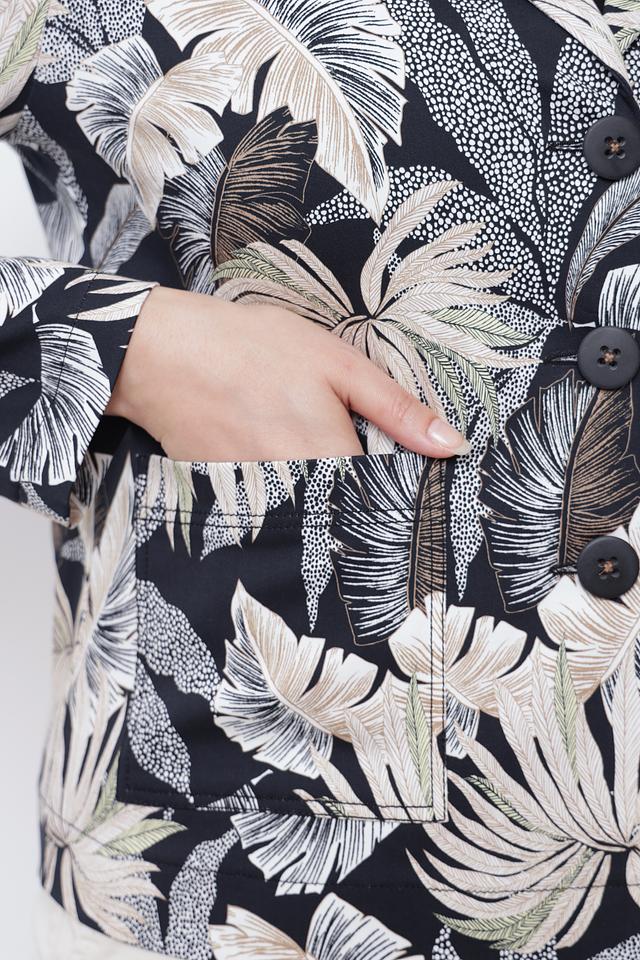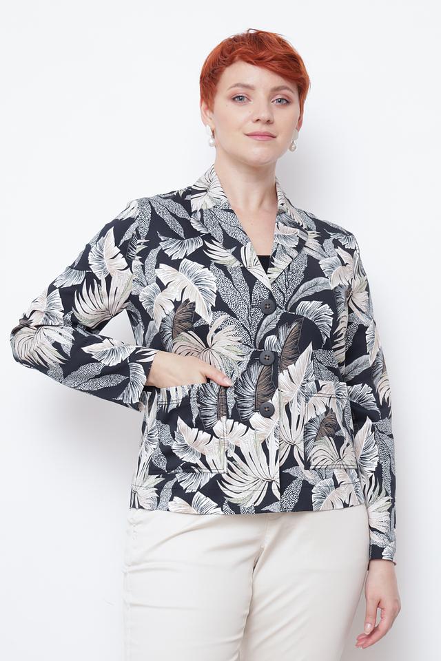 Этот стильный жакет от Frank Walder выполнен в темно-синем цвете и украшен эффектным цветочным принтом, добавляющим образу свежести и оригинальности.