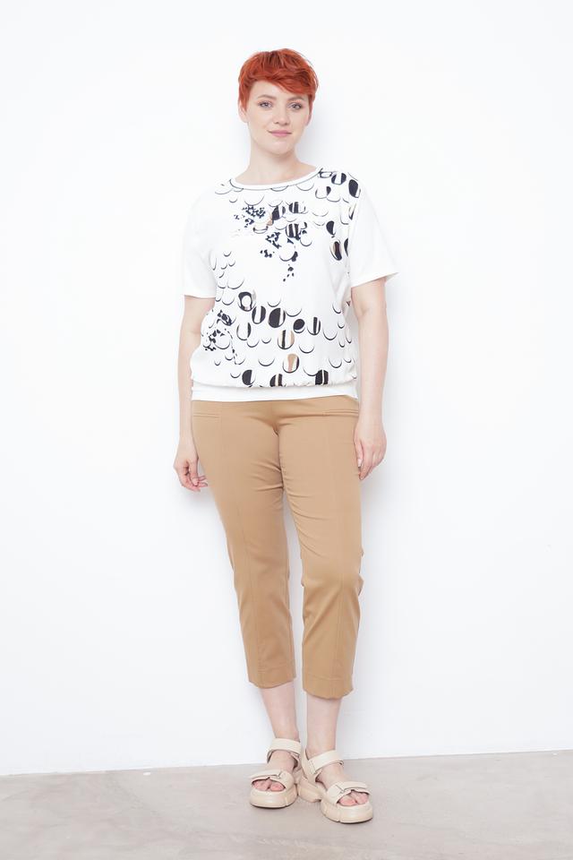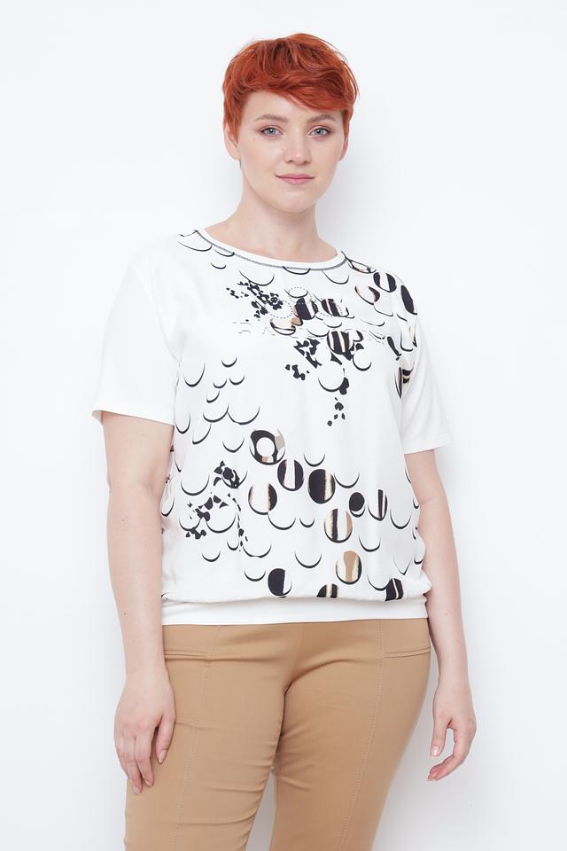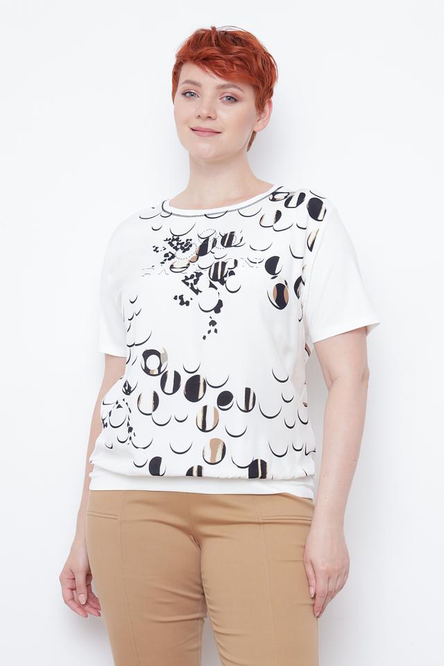 Модель отличается свободным кроем и короткими рукавами, что делает её идеальным выбором для тёплой погоды. Главная особенность блузы – оригинальный принт в чёрно-белой гамме, который придаёт ей неповторимый стиль.
