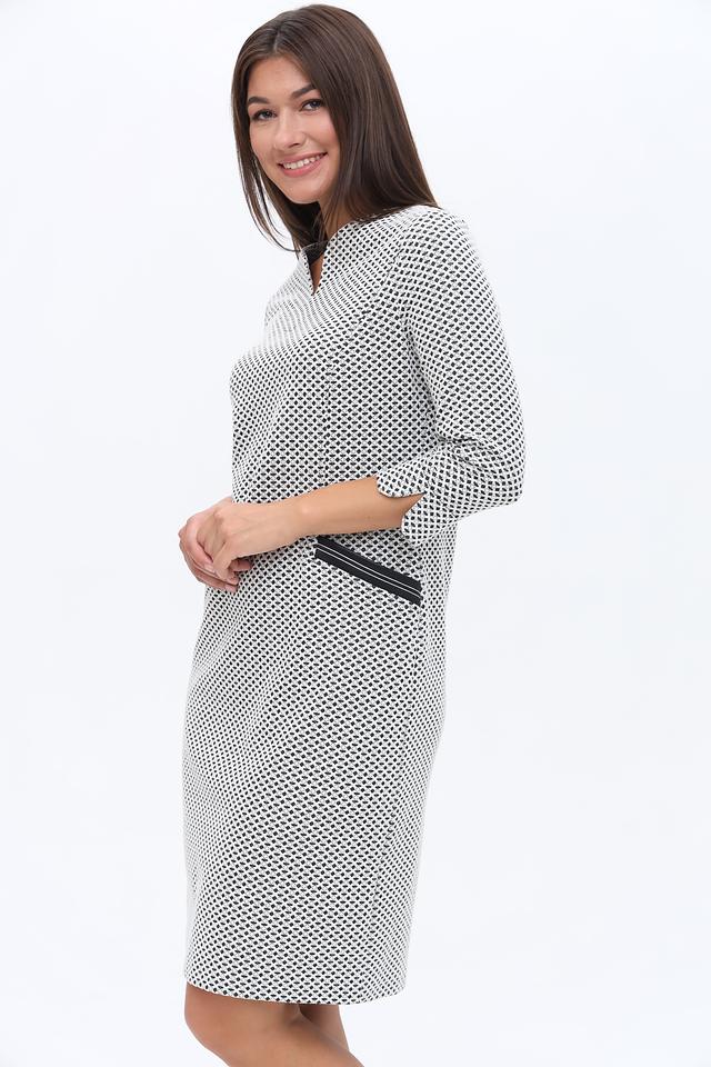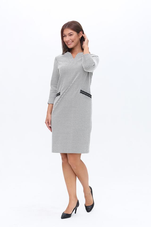 Платье Frank Walder белого цвета с мелким чёрным горошком – элегантный выбор для создания женственного образа. Приталенный силуэт и рукава 3/4 подчеркивают достоинства фигуры, а удобные карманы добавляют практичности. Состав: хлопок 50%, полиэстер 48%, эластан 2%