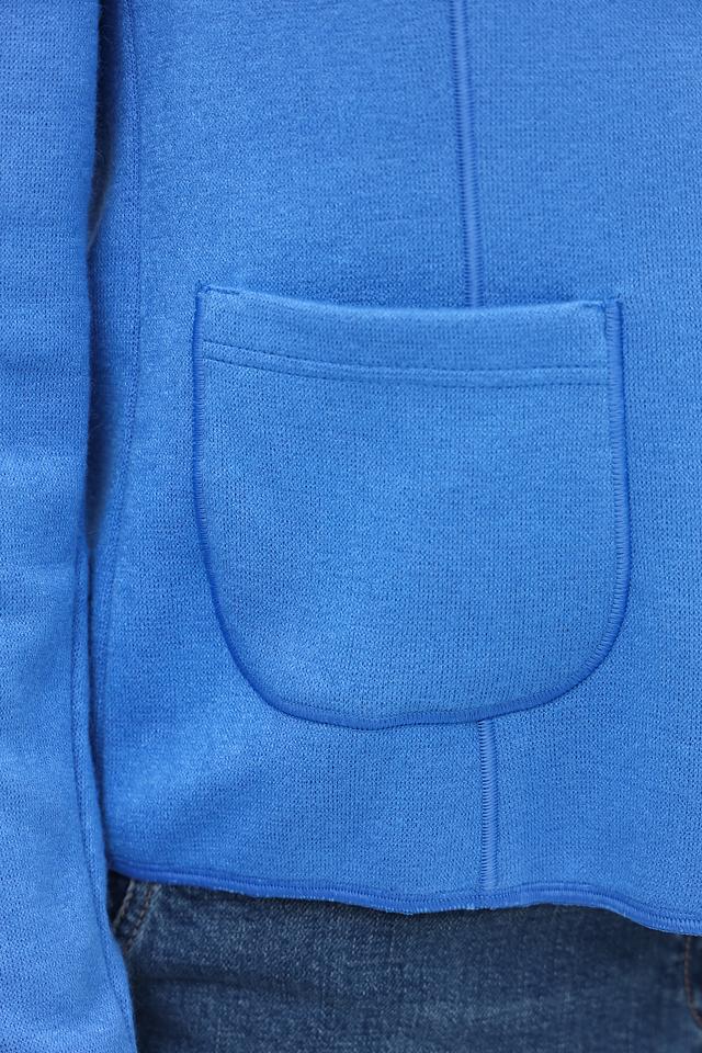 Состав ткани: 45% вискоза, 37% полиэстер, 18% полиамид. Такое сочетание материалов обеспечивает комфорт в носке и практичность в уходе. Жакет хорошо держит форму и не мнется.