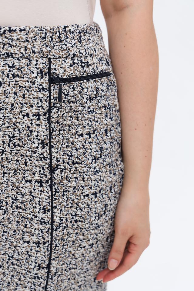 Юбка оснащена молнией и застежкой на пуговицу. Благодаря своему универсальному дизайну, юбка легко сочетается с различными видами блузок, рубашек и жакетов. Состав ткани: 60% полиэстер, 30% хлопок, 8% вискоза, 2% эластан.