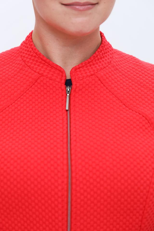 Женский жакет Frank Walder красного цвета – стильная и удобная модель с застежкой на молнию. Жакет имеет стеганую фактуру и приталенный силуэт, что делает его универсальным дополнением к любому образу. Состав: хлопок 60%, полиэстер 35%, эластан 5%