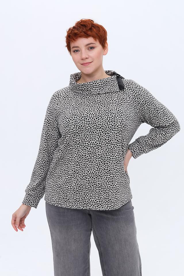 Модель имеет удобный крой и приятную к телу текстуру благодаря сочетанию полиэстера (60%), вискозы (34%) и эластана (6%). Высокий воротник дополнен декоративной застёжкой, которая акцентирует внимание на зоне декольте.